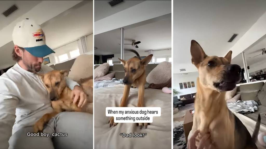 The clip shows Cactus barking and taking out voices after hearing “something’s outside.” But instead of running and inspecting the source of the voice, the pup gets anxious and becomes very vocal, which takes his owner, Michael Henry, by surprise.