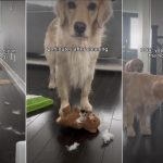 Most people love Golden Retrievers for their goofy and playful nature, and Benny is definitely leaning into that today. He keeps his body low and his gaze away from his target. The owner says Benny truly believes that if he can’t see them, they can’t see him. It is honestly the funniest thing to watch.